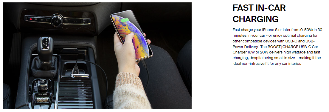 - Fast Charge for iPhone: Charge an iPhone 8 or later from 0-50% in just 30 minutes.